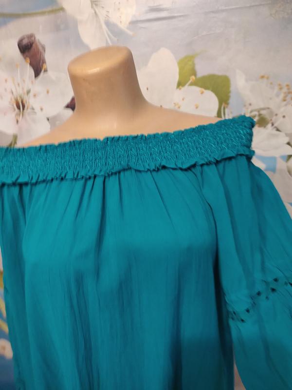 Состояние идеальное.Очень красиво сидит резинка на плечах.Резинка широкая,рукава длинные внизу на резинке, украшен прошвой.ПО по резинке 45-60 ,длина от резинки 60,длина рукава от резинки 56.Возврата и обмена нет.