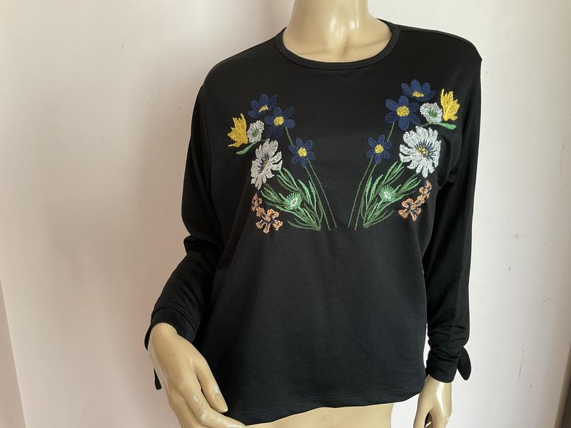 Тканина середня, тягнеться. Заміри в грудях 58 см в бедрах 58 см довжина 54 см рукав 66 см від горловини 4:6:24