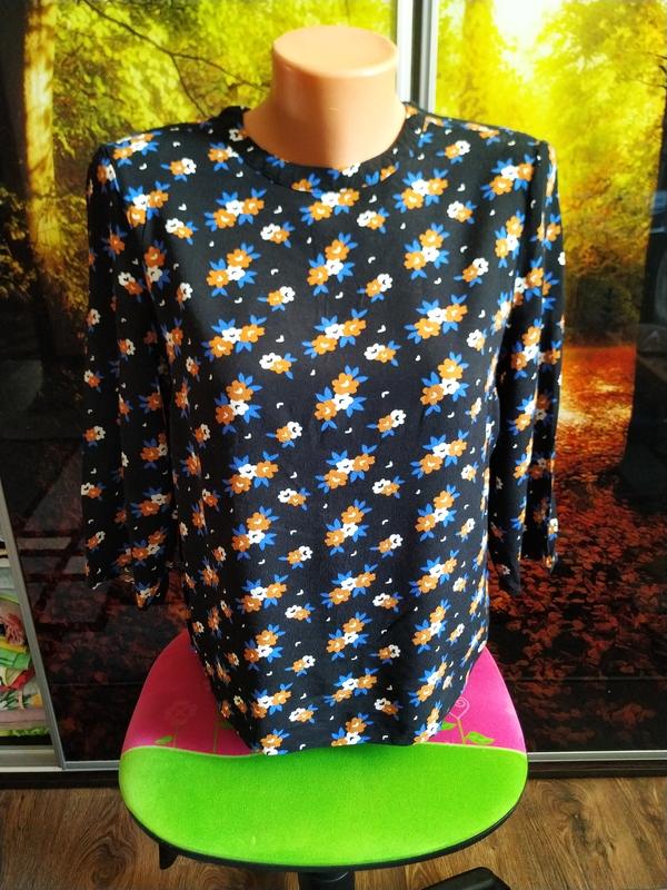 Чорна жіноча блуза в квіти 44-46 р. в ідеальному стані. довжина-58 см,рукав іде 3/4-від плеча-43 см,ПОГ-53 см.