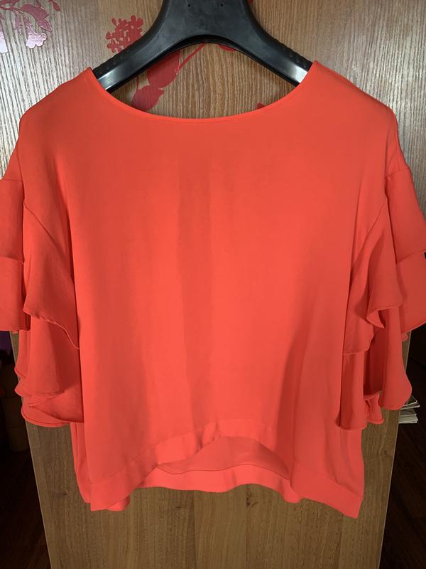 Элегантная блуза от M&S Ярко оранжевый цвет,рукава с воланами На спине V-образный вырез с завязкой Размер UK 16 ( замеры по запросу) 100% полиэстер Смотрите и другие мои объявления