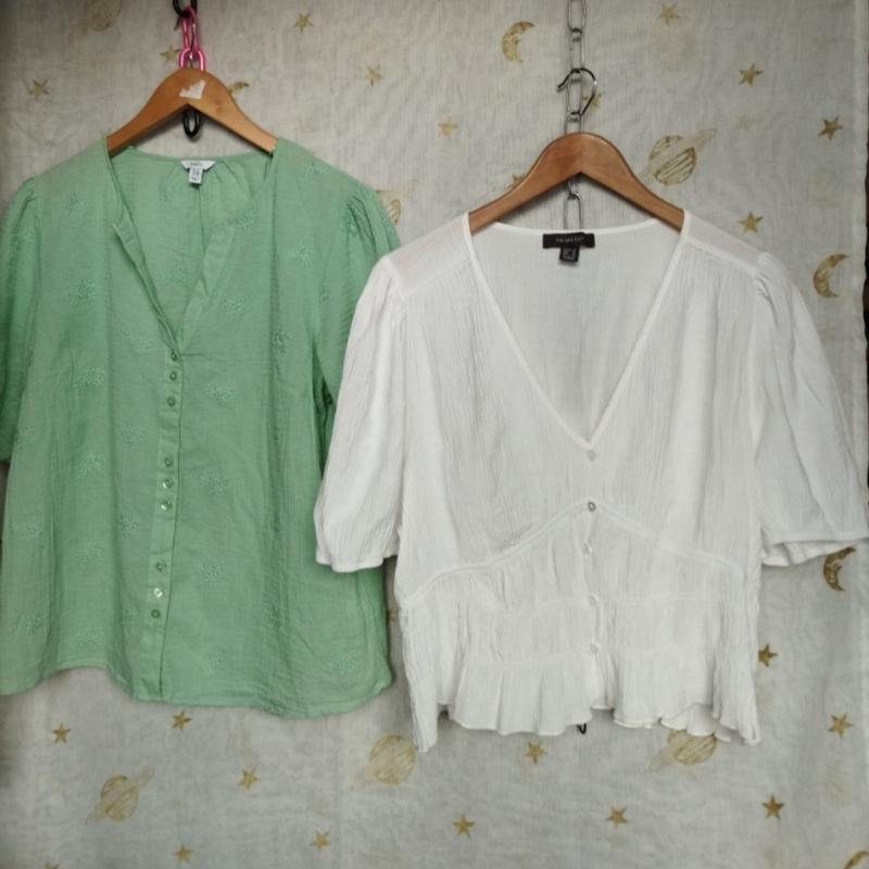Блузи в ідеальному стані.Салатова ,Індія,бавовна,розмір 50-.ОГ 110, довжина 60. Біла 52-54, віскоза ОГ 116, довжина 50,рукав 28.
