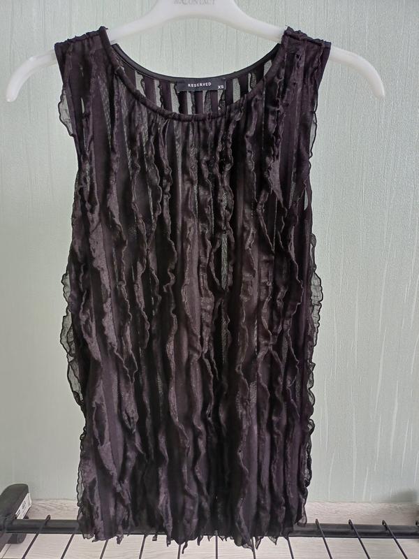 Блузка черная женская с рюшами, размер xs