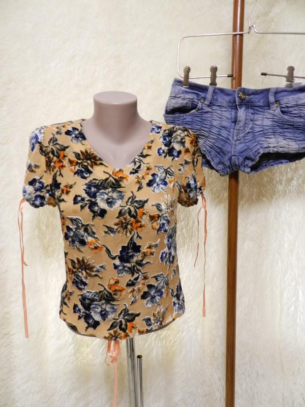 Блуза напівпрозора з велюровими квітами є невелика цятка