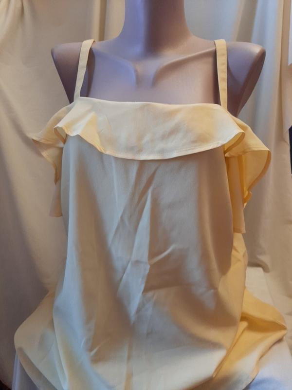 Блуза с рюшами и лямочками, стан нової речі, розмір UK 16: ПОГ - 56, ПОБ - 63, довжина - 67см