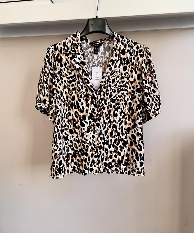 Стильна анімалістична блуза з комірцем,натуральна,приємна,не просвічує,проста і ефектна,відмінної якості та крою.Заміри дивіться на фото.