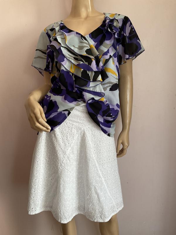 Волани. Без дефектів . Замок в боковому шві. Без дефектів . Заміри в грудях 52 см в бедрах 56 см е розрізи . Довжина 62 см в плечах 41 см е рукав крило 11:7:24