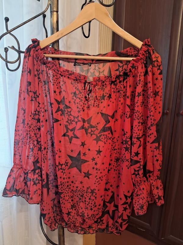 Легка, напівпрозора блуза, яскравого кольору. Усі заміри на фото.