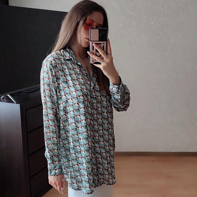 Рубашка с абстрактным узором. Легкая, приятная к телу Размер L - XL Обхват груди: 62 см Ширина: 62 см Длина: 80 см. Длина рукава от плеча: 72 см.