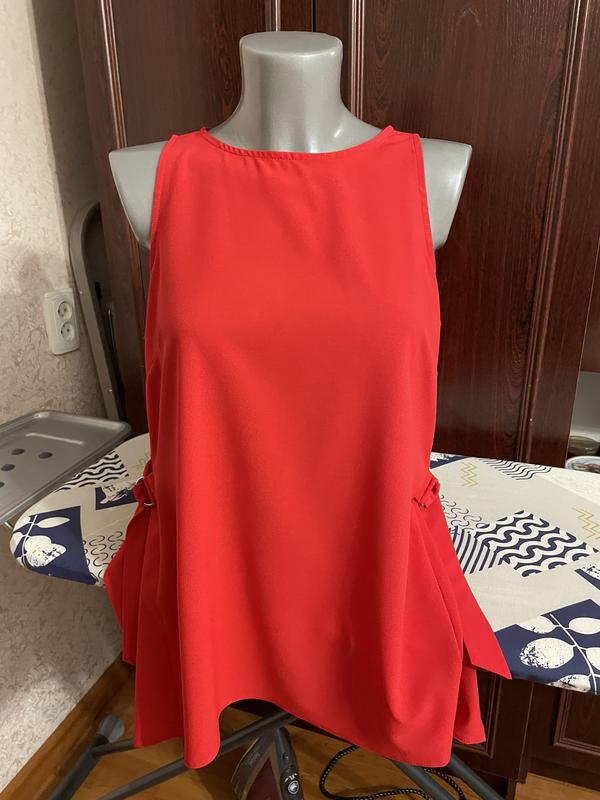 Червона блуза, дуже цікава бічними застібками, які утворюють складки по бокам. Розмір ХС-С.