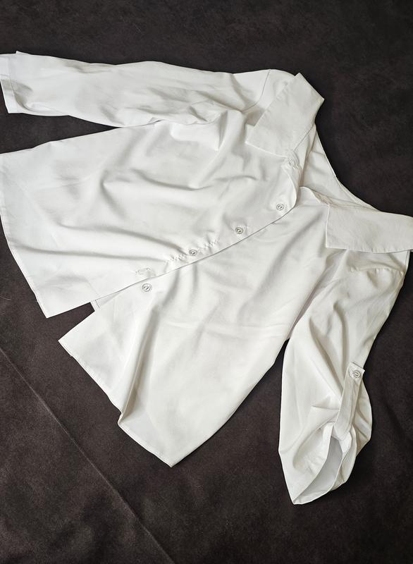 . Одягнена один раз на 15 хвилин. Є невелика затяжка де пуговки. Можна одягати з одніє сторони без пуговок, та з іншої, де вони є. Довжина 60. Ширина талія 47, ширина низ 53. Довжина рукава від плеча 44, також рукав можна пристібнути на пуговку.