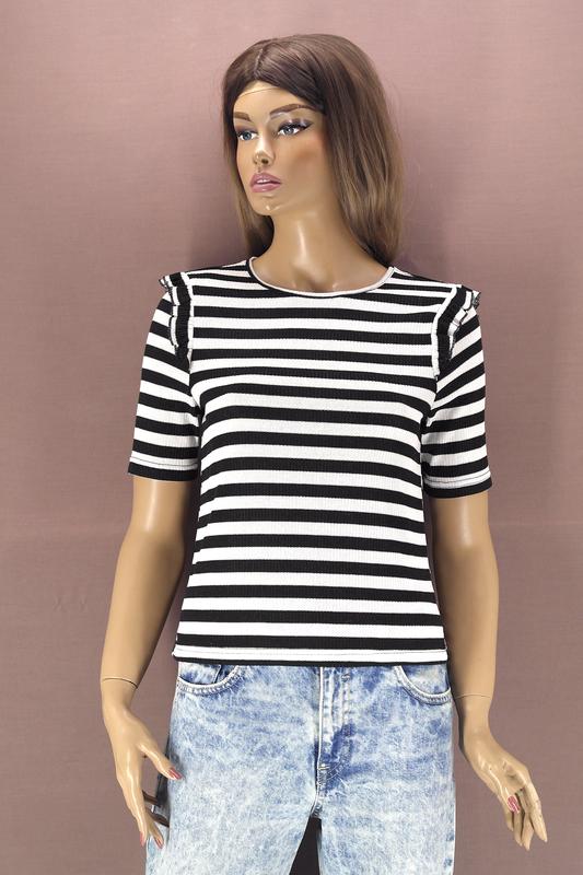 Брендова блузка "New Look" у чорно-білу смужку. Розмір uk12/eur40. Склад: 65% поліестер, 30% перероблений поліестер, 5% еластан. Розмір М, можна і на S (залежно від бажаного ступеня свободи). Заміри в нерозтягнутому вигляді: -ПОГ — 44 см; -НОТ — 42 см; -довжина — 54 см. Без дефектів. В ідеальному стані. Параметри манекена, на якому зроблено фото: -зріст — 185 см; -обхват грудей — 87 см; -обхват талії — 64 см; -обхват стегон — 92 см.