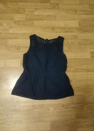 блузка з натуральної тканини ( прошва) класичного крою,по спинці застібається на блискавку у насичено у темно синьому кольорі