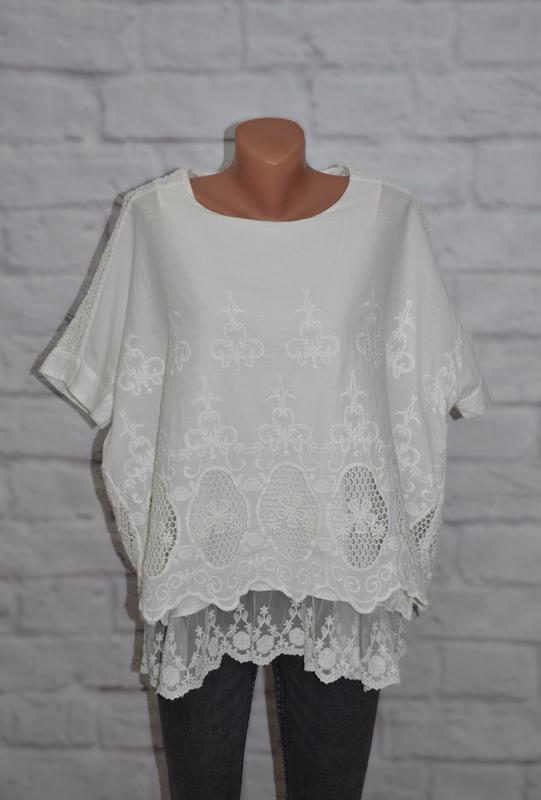 Блуза вільного крою вишита "MALVIN" розмір-36, за рахунок крою добре на більш склад: 100% бавовна стан-нове речі (рукав-33, пахви-65, довжина-58/70)