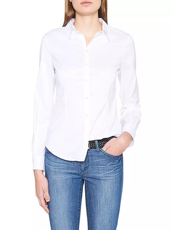 Жіноча сорочка від бренду Marc Cain. Розмір М. Сорочка білого кольору. Приталений силует. Склад 63% бавовна, 37% поліестер. Стан дуже гарний (невеличкі сліди носіння). Заміри: Довжина спереду 61см Довжина спинки 65см (68см з воротом) Під пахвами 47см Низ 48см Рукав від плеча 61см