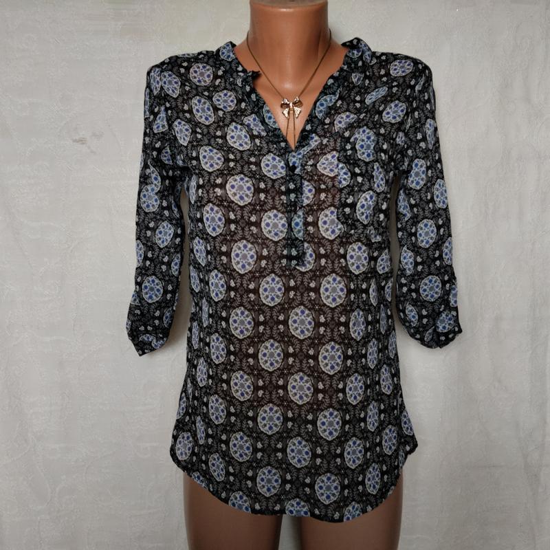 Шикарная шифоновая блуза туника, сзади длиннее. Индия. На рукаве есть хлястик, чтобы укоротить рукав. Замеры: длина спереди 65 сзади 72 рукав 49 пог 44-45 пост 47-49
