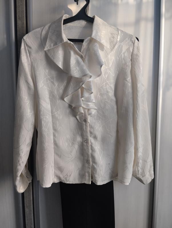 Бірок немає.Тканина шовковиста,приємна до тіла.В ідеальному стані. Заміри: довжина по спинці-63,плечі-43,подмишки- 58,талія-53,низ-55,пройма-28,довжина рукава-60
