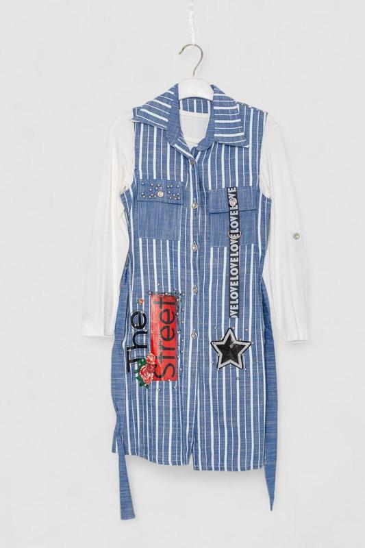 Плаття-сорочка для дівчаток із кофточкою-уцінка, колір джинс, 247r3822-u-4