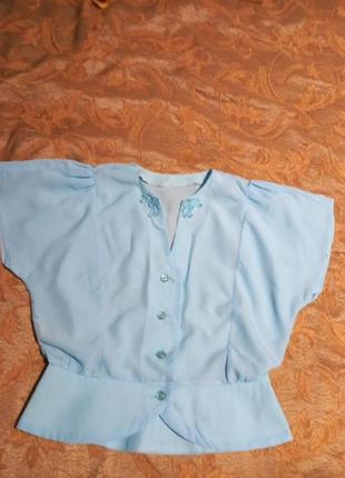 женская легкая блуза около 44-46-размер. замеры надам. есть небольшое пятно под рукавом останное фото. на внешний вид не влияет.