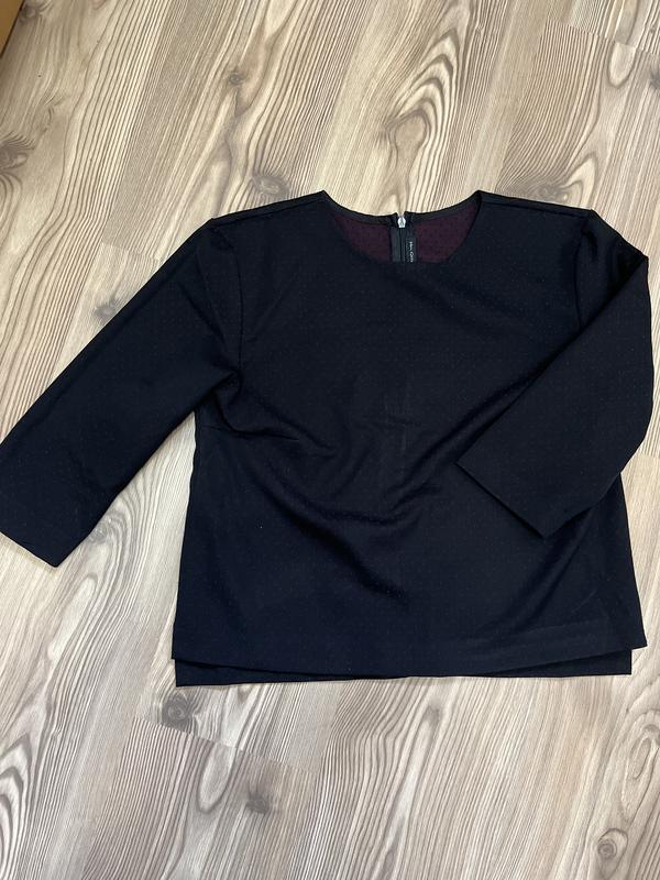 Розмір 40, укорочений. Класно виглядає з чорною спідницею або брюками на високу посадку.