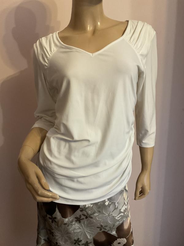 Колір молочний. Тягнеться . Не тонкий. Без дефектів . Драпіровка . Заміри в грудях 50-52см в талії 42-44см в бедрах 50-51см довжина 54см рукав 40см в плечах 37-39см 27:11:24