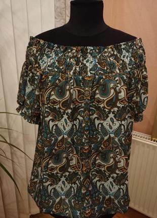 Блуза - топ женская с открытыми плечами в геометрический принт