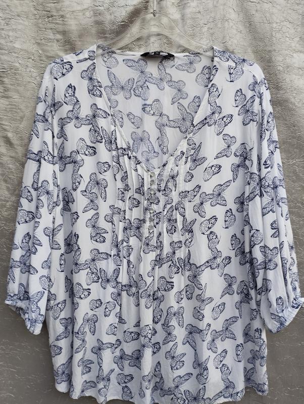 Блуза відомого бренду.Тканина тонка , просвічує,не тягнеться. Рукава 3/4,низ рукав на тонкій резинці. Пів о. г.- 65 ширина плечей - 46 довжина рукава - 46 пів об біцепс -22 пів о т - 70 пів об низ - 72 довжина - 74