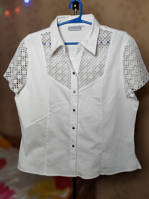 Продам жіночу блузку Стан: ідеальний Розмір: 7XL (По бирці), XL (за фактом) Фірма: LAFEIPIZA Матеріал: 95% Котон, 5% спандекс Виміри: Довжина: 68 см Ширина по грудях: 61 см Ширина по плечах: 52 см