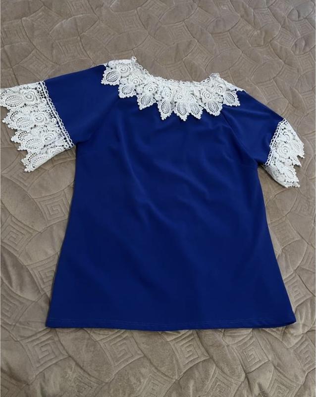 Синя блузка з мереживом Плечі - 42-44 (на резинці) ОГ - 50 Довжина від плеча - 59