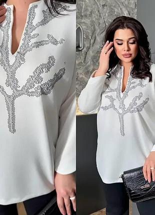 Блуза Арт 1178 Тканина трикотаж креп дайвінг, оздоблення термокаміння Колір чорний, білий, червоний Розмір 48-50,52-54,56-58