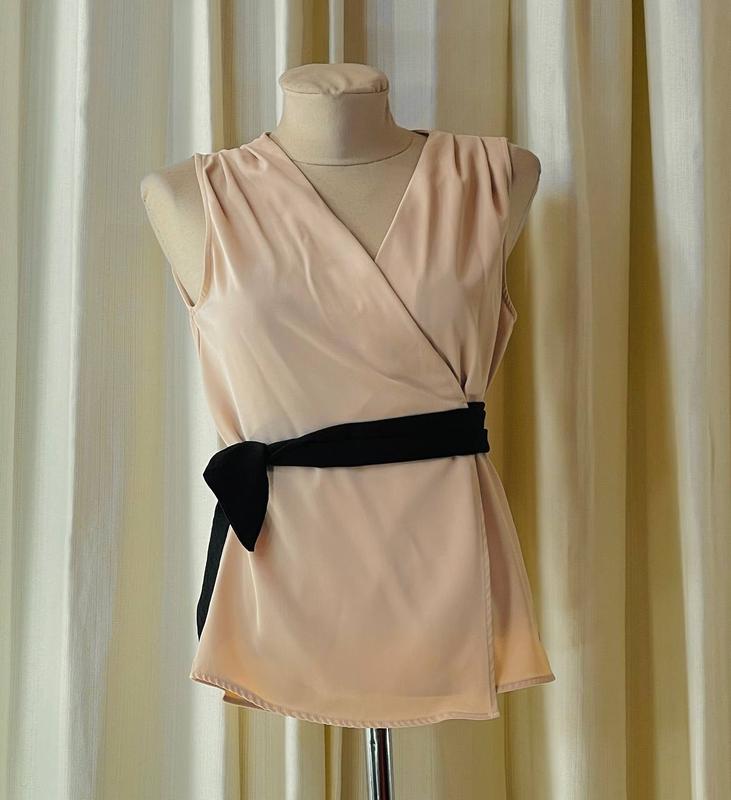 Блуза-жилет бежевого кольору ZARA BASIC🛍️❤️🔥 Розмір - UK 8-10/ EUR 36-38/ USA 4-6/ S-M / 44-46. Склад : 100% поліестер. Виробник Морокко. Блуза з запахом та завʼязками чорного кольору. V виріз горловини та на плечах злегка призібрано. Додаткові заміри: повна довжина 65 см, ширина плечей 36 см, напівобхват грудей 48 см (повний обхват 96 см) та піде на 110 см, напівобхват талії 48 см (повний обхват 96 см), напівобхват стегон 50 см (повний обхват 100 см) та піде на 110 см.