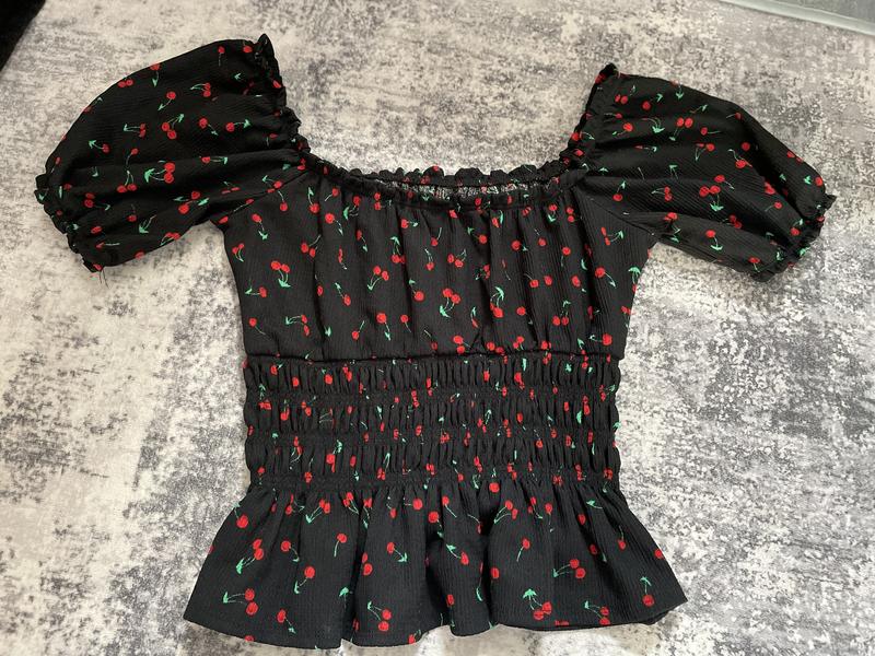 Укорочена блуза, з принтом вишня розмір m