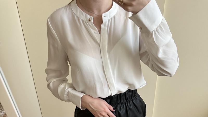 Блузка молочного кольору Вільного крою Стан нова! Параметри:пів обхват Ширина 46 см Довжина 62см