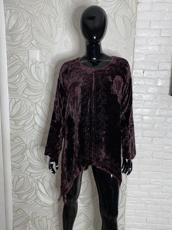 Асиметрична велюрова блуза кофта у стилі бохо one size. Довжина 70-97, рукав 48/64, ПОг 65, ПОБ 72