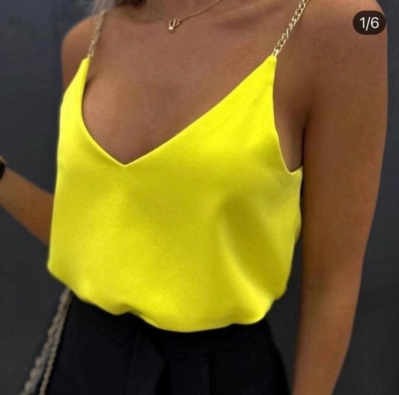 Блузка №617 Ціна-400грн розмір 42-44,46-48,50-52,54-56 тканина супер софт Кольори-бежевий, чорний, білий,жовтий,малина Легка вільна блузочка, декорована брителями з ланцюжка Виміри Довжина майки (з голів) 42-44-60см, 46-48-63см ОГ 42-44-89см, 46-48-98см ОБ 42-44-103см, 46-48-112см Довжина майки (з голів) 50-52-67см, 54-56-70см ОГ 50-52-106см, 54-56-115см ОБ 50-52-121см, 54-56-129см