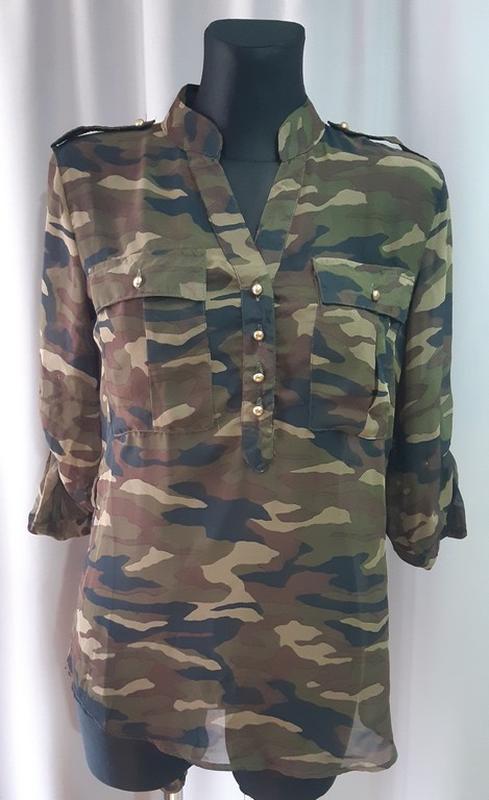 Блуза Mari Time Olko. Колір камуфляжний. 100% полиэстер. Довгий рукав, підстібається до короткого. Розмір 40. ПОГ-49, Довжина — 72. Нова.