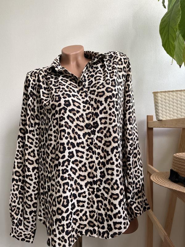 Стильна трендова блуза у леопардовому принті - завжди в тренді, якість люкс, як нова, ідеальний стан. Довжина по спинці 67 см Довжина спереду менше 62 см 57 груди від шва до шва Рукав довжина 70 від шиї і вниз по зовнішньому краю Від підмишечноі впадини вниз по боку 28 Розмір S вільний 100% поліестер