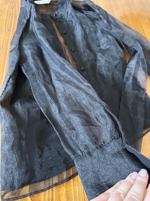 Тренд 2025 року, напівпрозора блуза Zara , жодного разу не одягалась, повністю нова, можна носити наверх під топ чи плаття. Дуже класна, якість 10/10