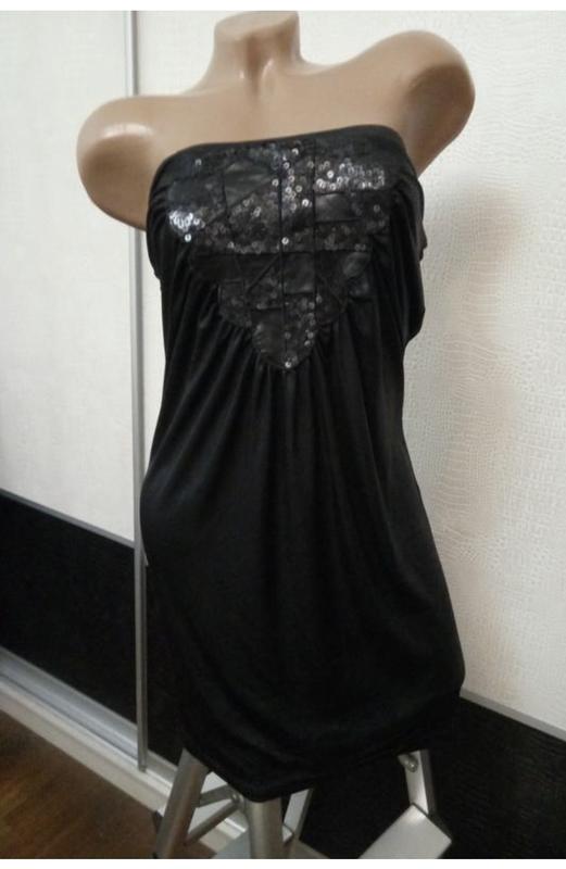 Чорна блуза Only. р. М Аплікація на грудях з шматочків шкіри та паєток. Тканина добре тягнеться. Довжина з пахви 67см Ширина між пахвами 37-50см,гумка. Пот44см,тягнеться Поб 49см,тягнеться Тканина приємна до тіла.