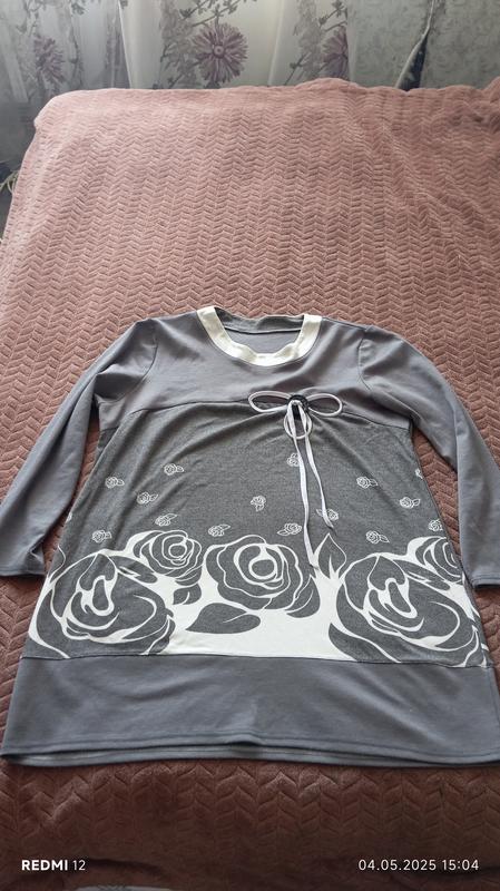 ширина під пахвами 58см ширина з самого низу 66см довжина рукава від плеча(рукав 3/4) 59см заг довжина від середини плеча 82см. Є нюанс злівої сторони знизу(фото 3) є катишки,решта ідеал.Пересилка укр і нова пошта по 100 %передоплаті або через кнопку.