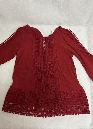 Кофтинка в ідеальному стані , дуже гарне мереживо, на рукавах виріз. Розмір 36, ідеально підійде на S. Тканина така що можна не прасувати