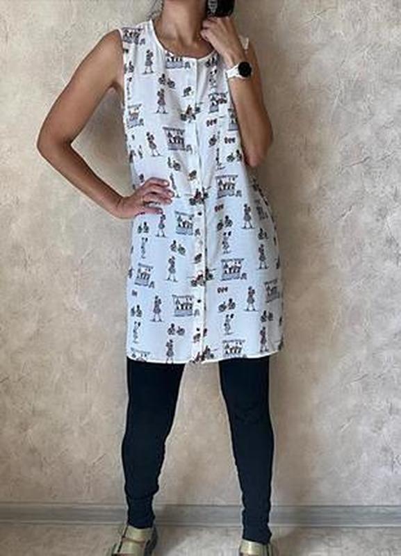 🍒14uk/наш 48-50 розміру 🍒неймовірна шифонова подовжена блуза сорочка,туніка з малюнком у французському стилі TU довжина від плеча 84 см напівобхват грудей 53 см напівобхват низу 56 см з боків розрізи по 19 см 🍒100% поліестер шифон 🍒стан нової речі #58#