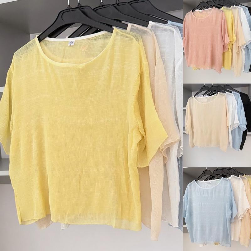 Sale‼️‼️Ціна 200грн🔥🔥🔥 Круті блузи оверсайз 🥰🥰🥰 В кольорах: білий, чорний, літний, персик, бежевий, блакитний 🖤🤍🧡💛🩵🩷 Тканина шифон жатка з люрексом🫶🏻тягнеться Якість відмінна 👌 Розмір універсальний ПОГ 52 ( максимум 62), рукав 22, довжина 52см Коштували дорого