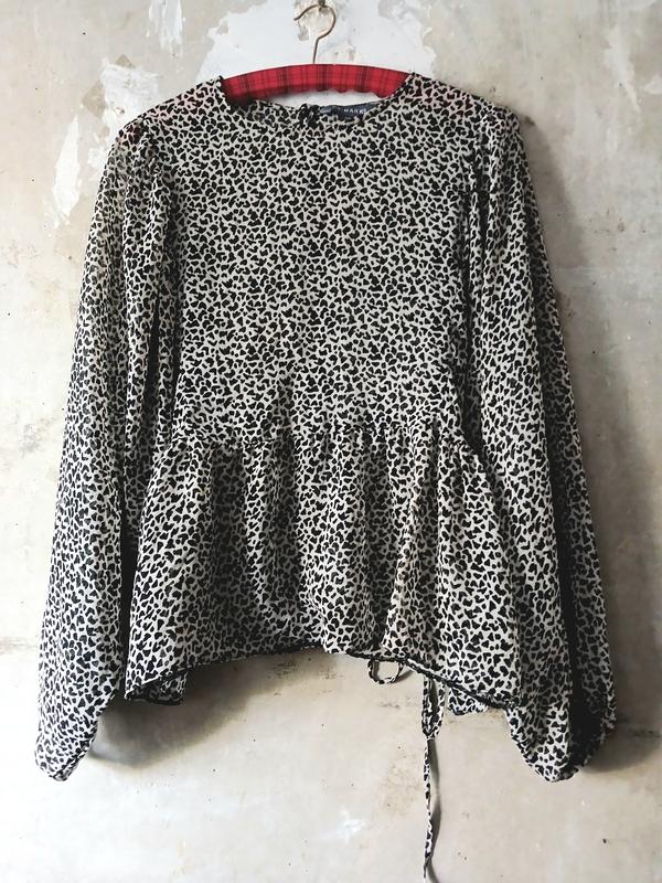 Primark блузка з напівпрозорого надлегкої тканини ,з об'эмними рукавами . Дуже гарно сидить по фігурі ,об'ємна і вільна,прозора ,але за рахунок дрібного рисуна виглядає не вульгарно . Розмір написано 14 (М) -буде ,прям, сильно вільно ,оверсайз, добре буде на L ,теж буде вільно ,і на XL буде добре Заміри: Плечі - 38см Рукав-64 см Груди напівобхват- 50 +см Талія напівобхват-49 см Стегна напівобхват-62+см Довжина -59см