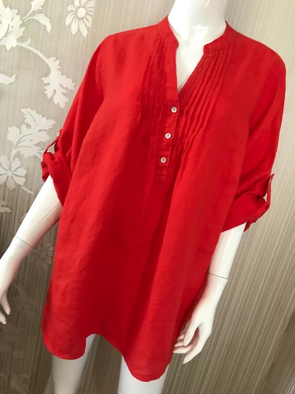 Красива блуза Marks&Spencer. 100% льон. Гарна якість. Горловина оздоблена мереживом. Красивий насичений колір. Рукав 3/4 регулюється Розмір 20 ПОГ 63 ПОБ 65 Плечі 42 Рукав 47 Біцепс 20 Довжина 73 Стан нової речі, без етикеток