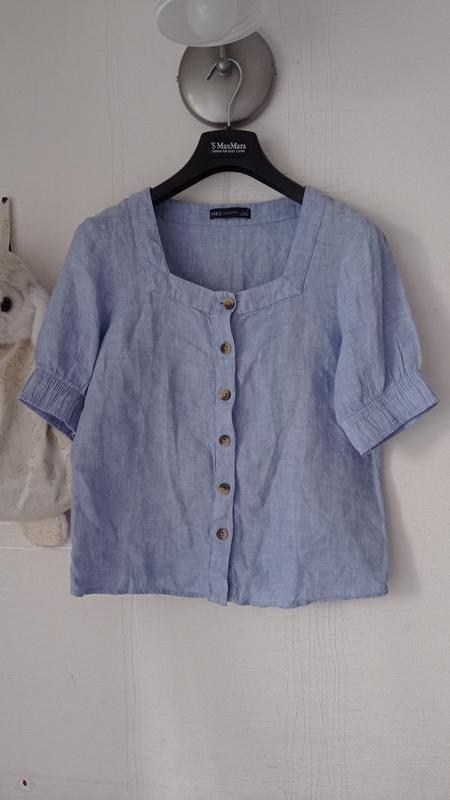 Чудова сорочечка в відмінному стані. Розмір - 8, але може й на 10 сяде. Плечі - 38, під пахвами - 48, рукав - 27, довжина - 61.