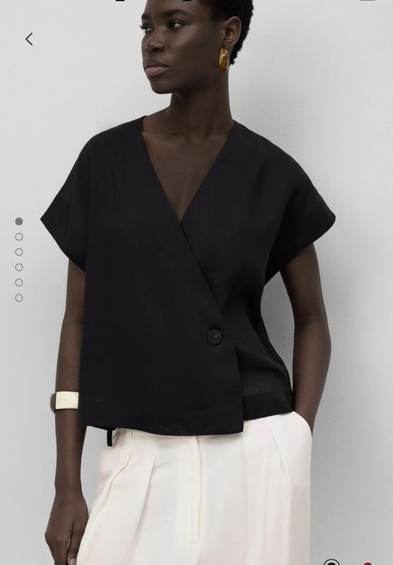 Стильний сучасний топ відомого іспанського бренду Adolfo Dominguez у японському стилі. V-подібний виріз. Застібка на гудзик. Тканина 55 % рамі +45 % ліоцел. Рамі корисна влітку для шкіри: тонка, суха на дотик, схожа на льон, але з легким блиском. Машинне прання 30*. Топ підійде на розмір XL. Перша ціна 149€. ПОГ 60, ПОТ 56, Довжина по спинці 60.