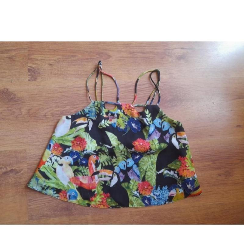 топ укорочений в птахи. цікавий принт. екзотичні пташки.. р.XS/S. Tooshop. ролвестер, але на дртик як креповий шовк