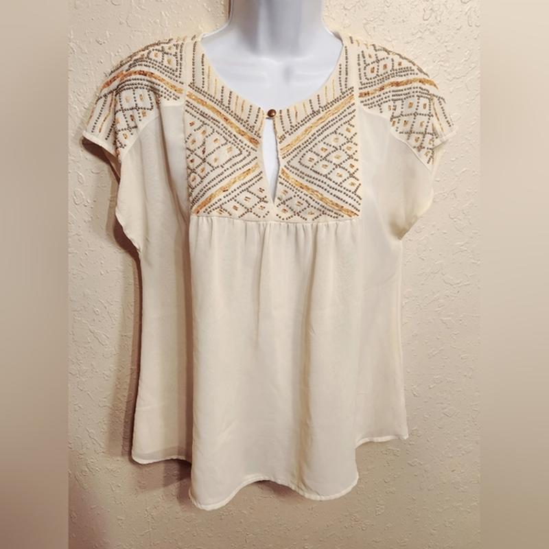 Шифонова блузка кремового кольору з бісером дженніфер лопес джей ло 8-10 розміру