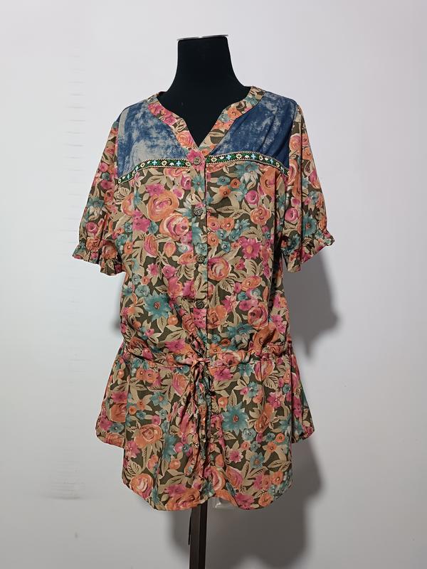 Бохо блуза в цветочный принт с поясом -затяжкой simply couture,xl