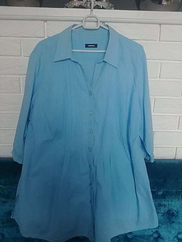 Класна котонова сорочка- блуза насиченого блакитного кольору💙💙💙 довжина 79 плечі 43 пог 66 пот 66 поб 73